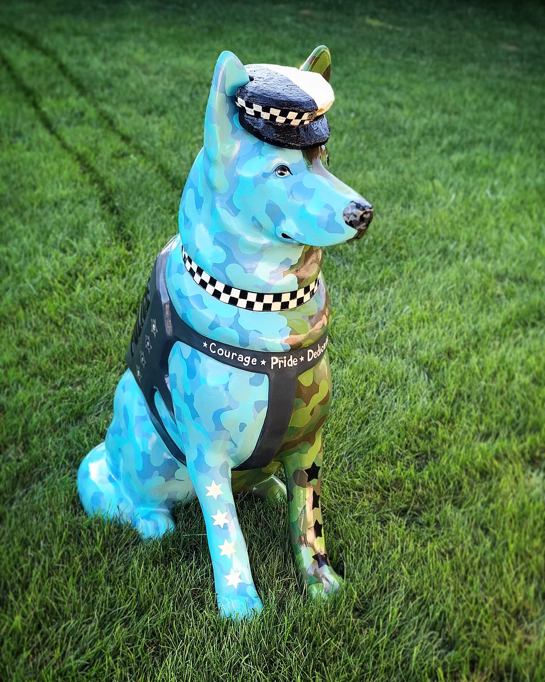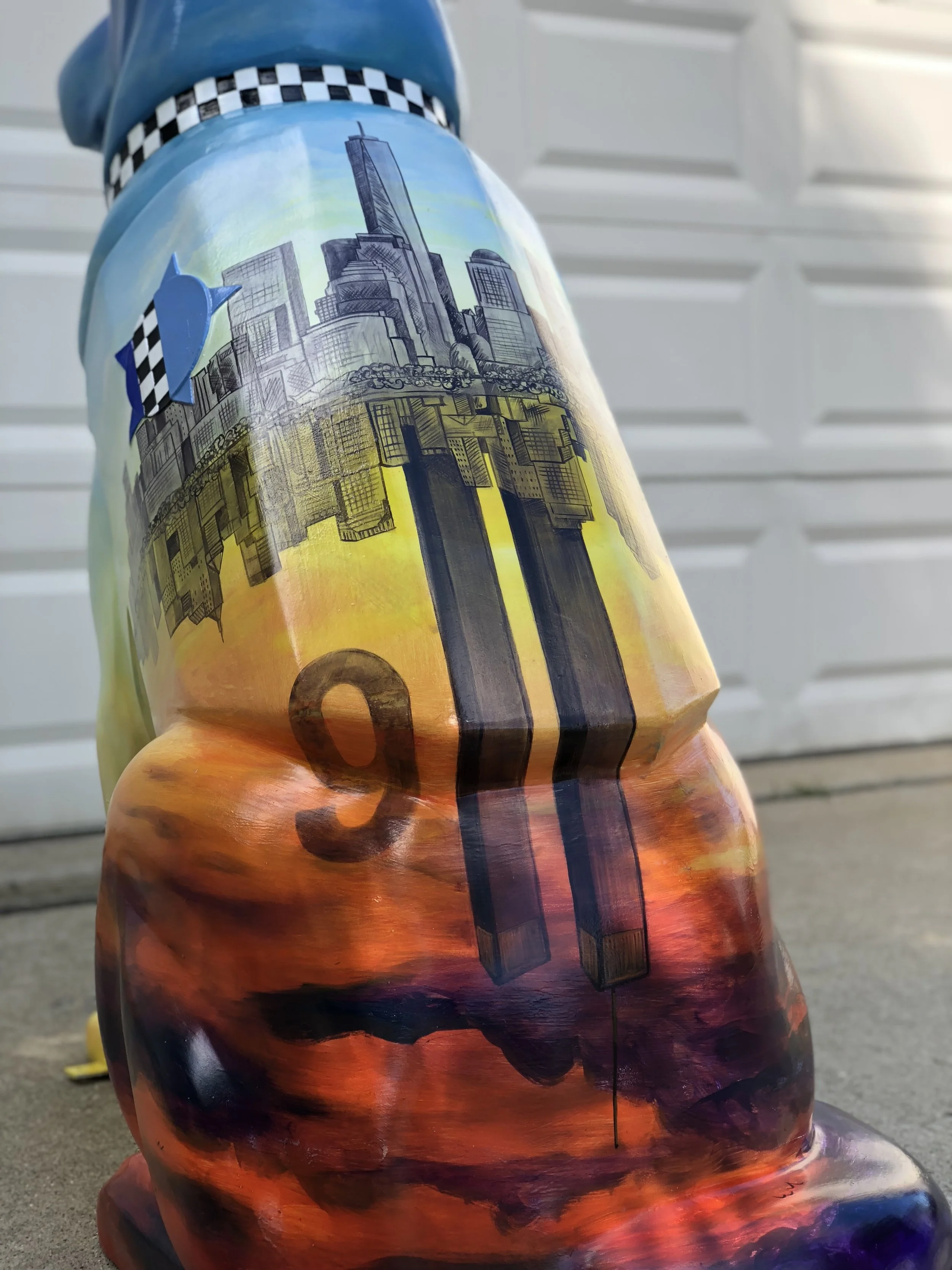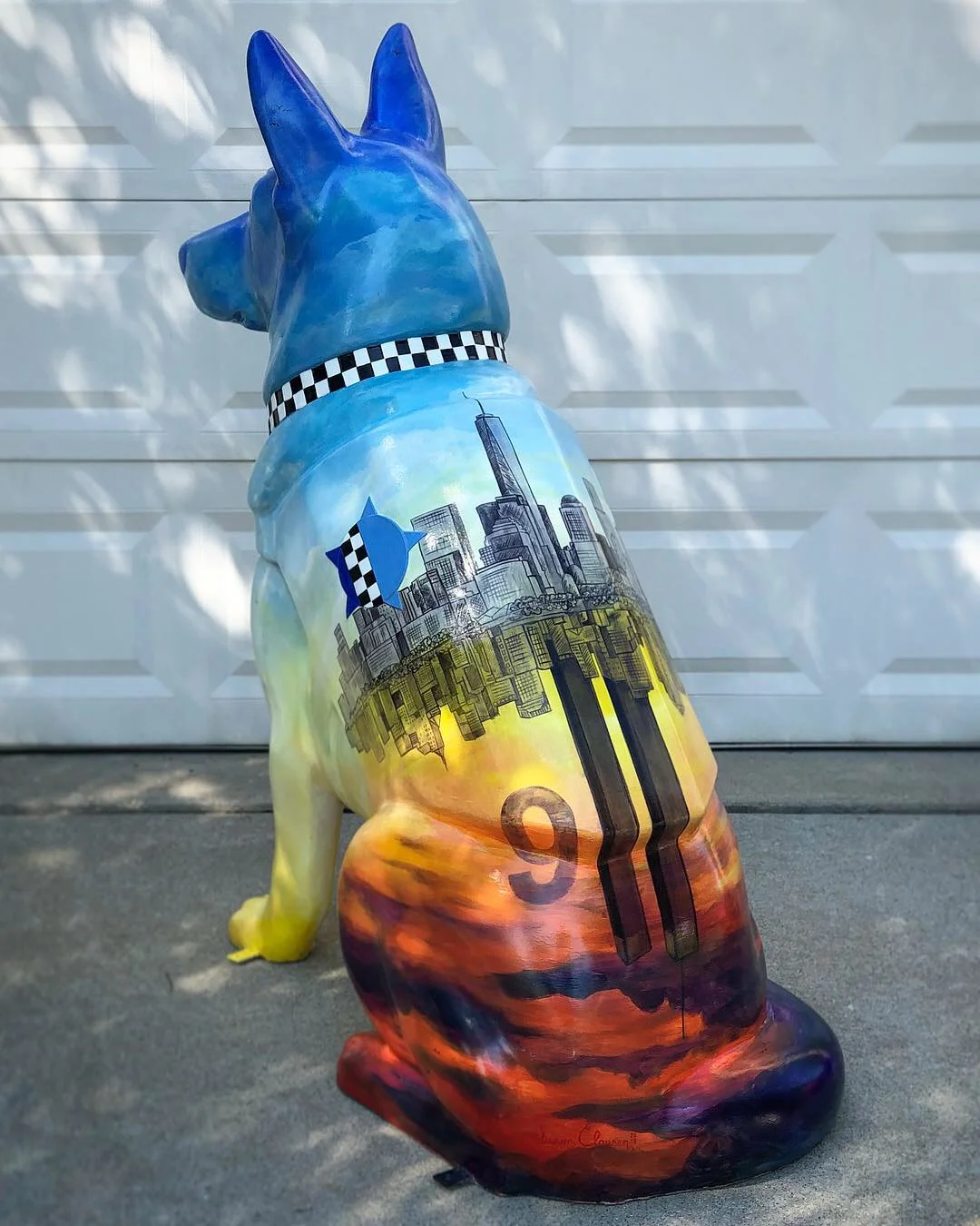 Their German Shepherd was designed as a tribute to 9/11 in honor of the fallen officers. It is an acknowledgement of how that event turned the world upside down, but it also calls attention to the unity and perseverance of NYC and our nation as a whole.