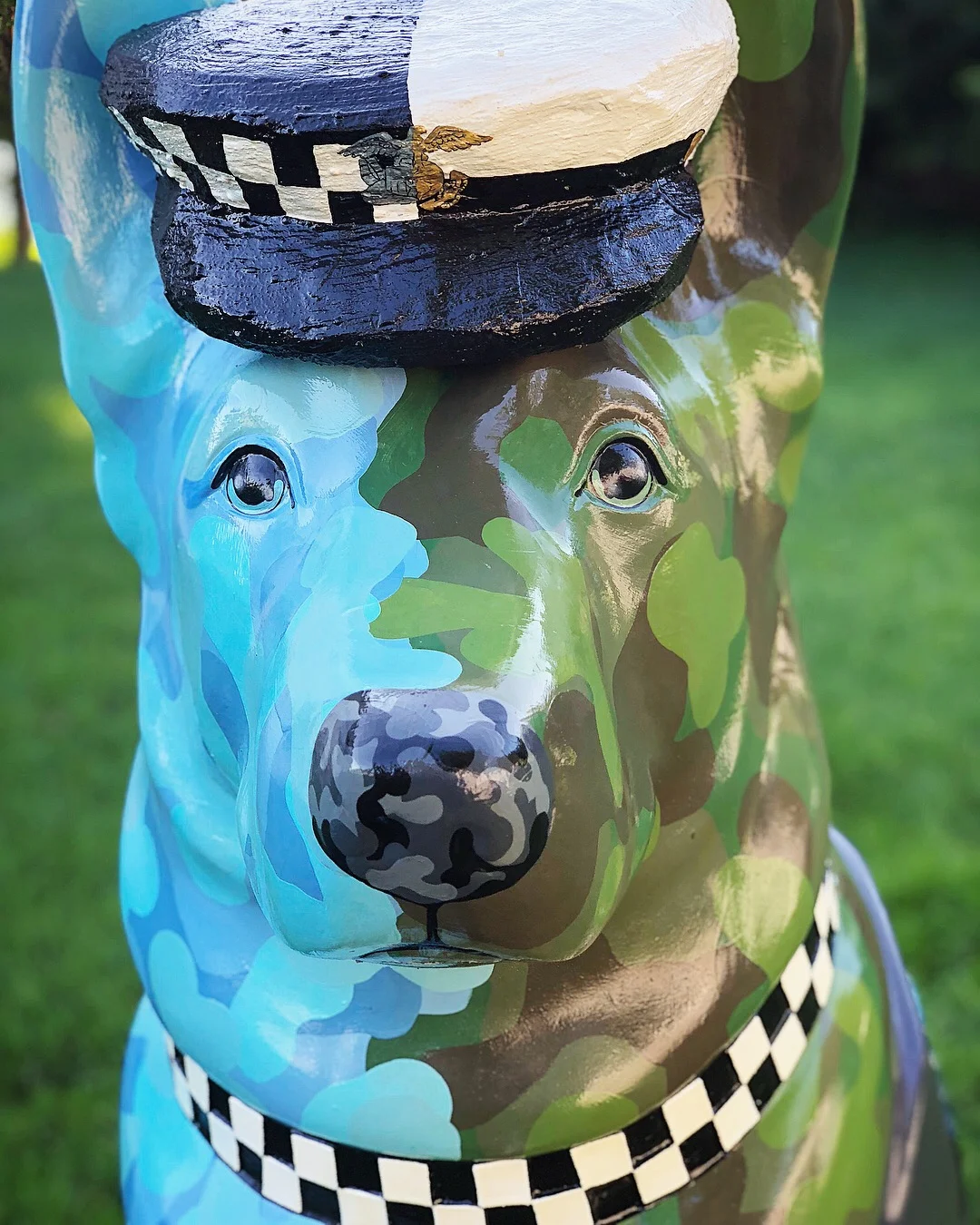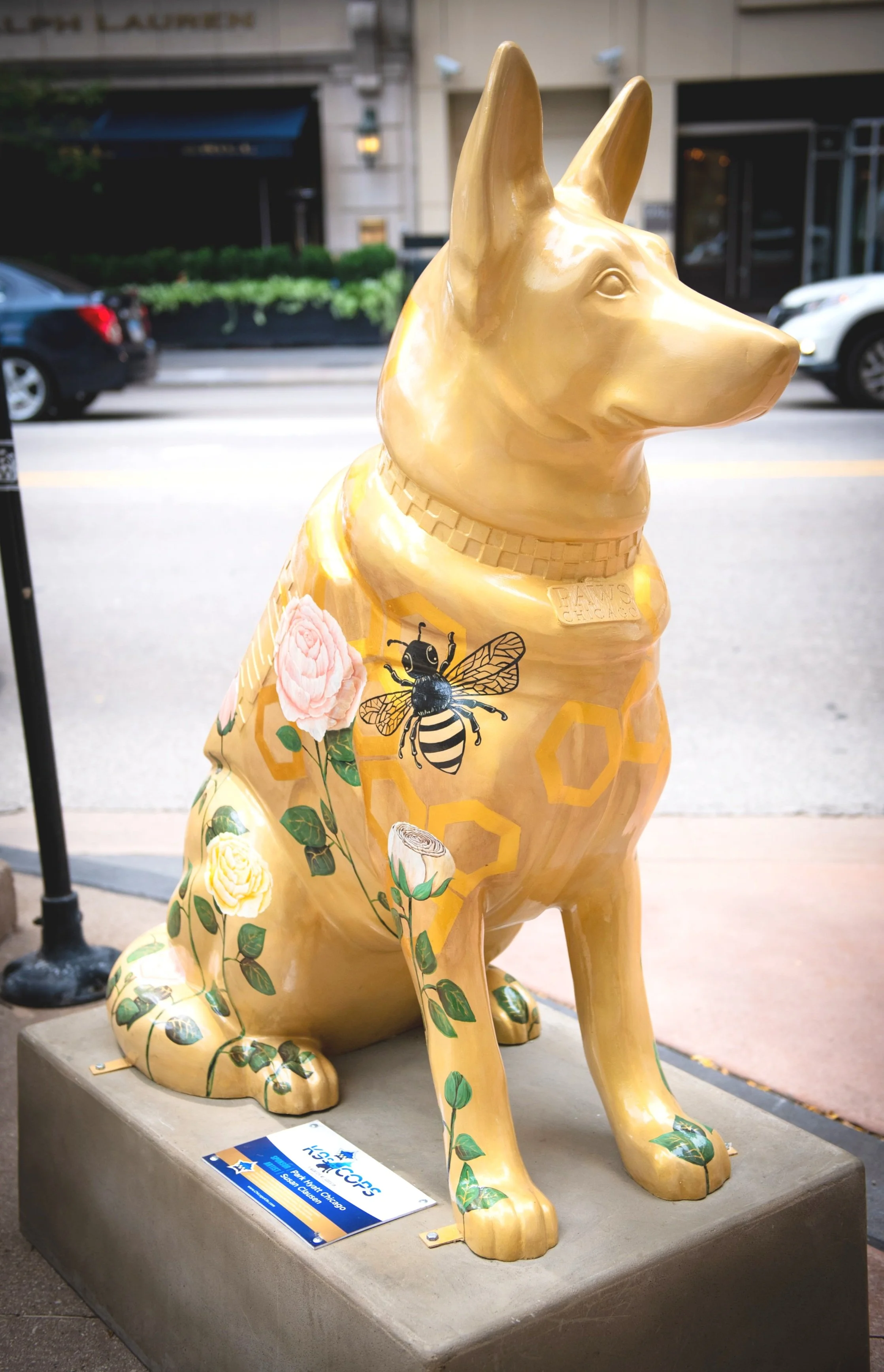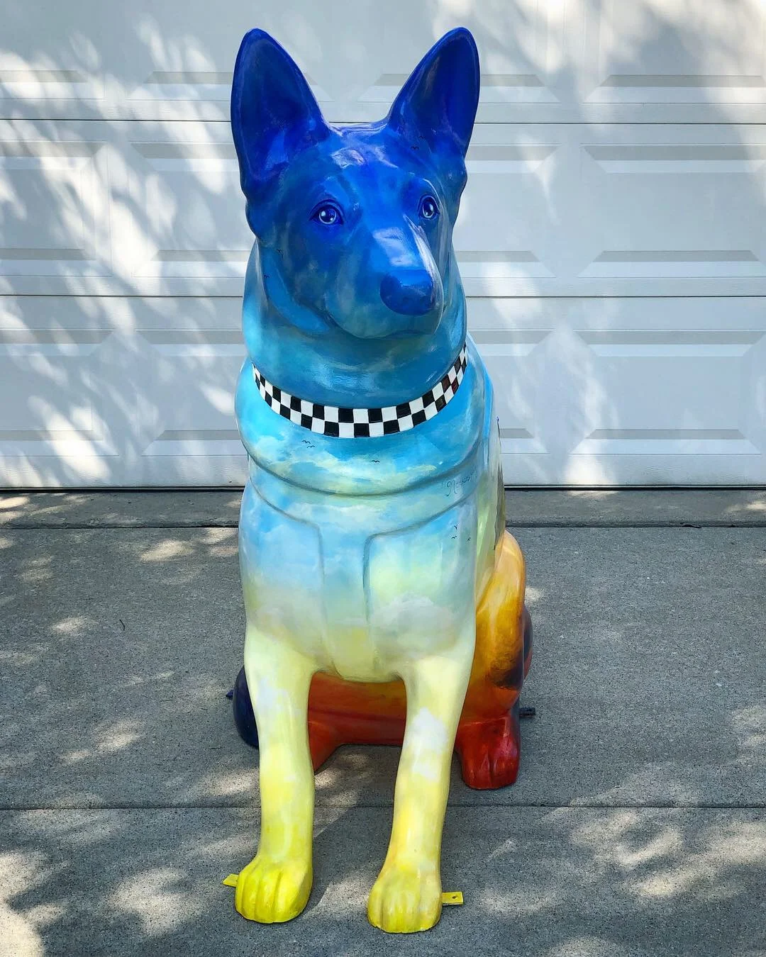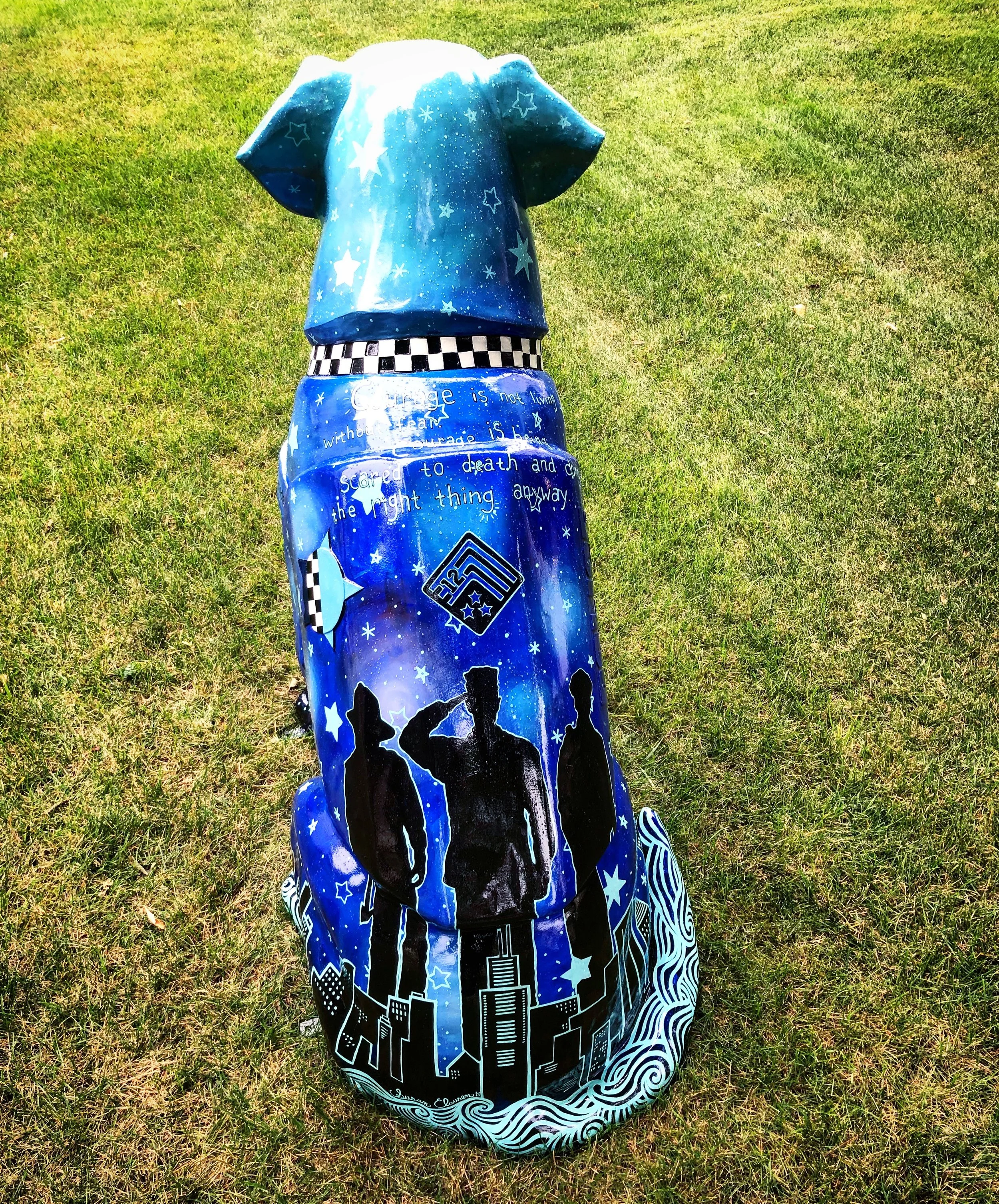 Their German Shepherd was designed as a tribute to 9/11 in honor of the fallen officers. It is an acknowledgement of how that event turned the world upside down, but it also calls attention to the unity and perseverance of NYC and our nation as a whole.