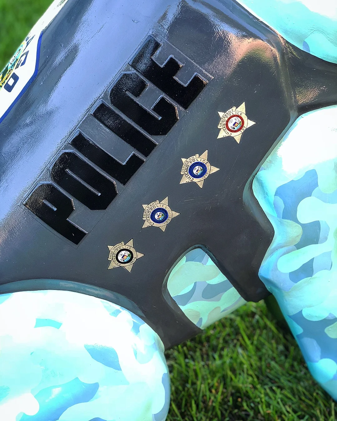 LawDog Security is made up of both active and retired law enforcement officers, many of whom are also veterans. For that reason, this K9’s theme is half CPD and half military. There are military seals and CPD badge numbers hidden in the camouflage.