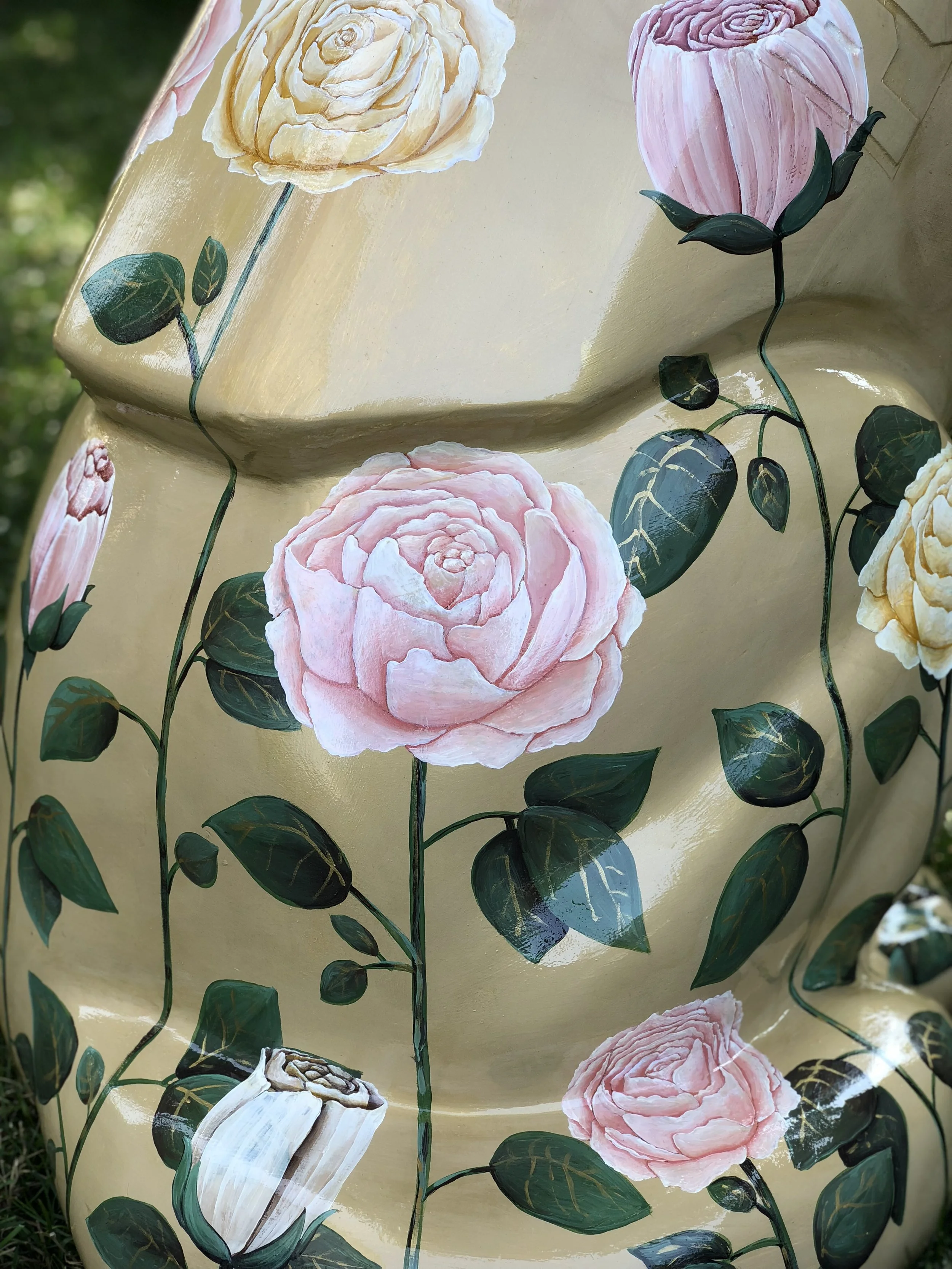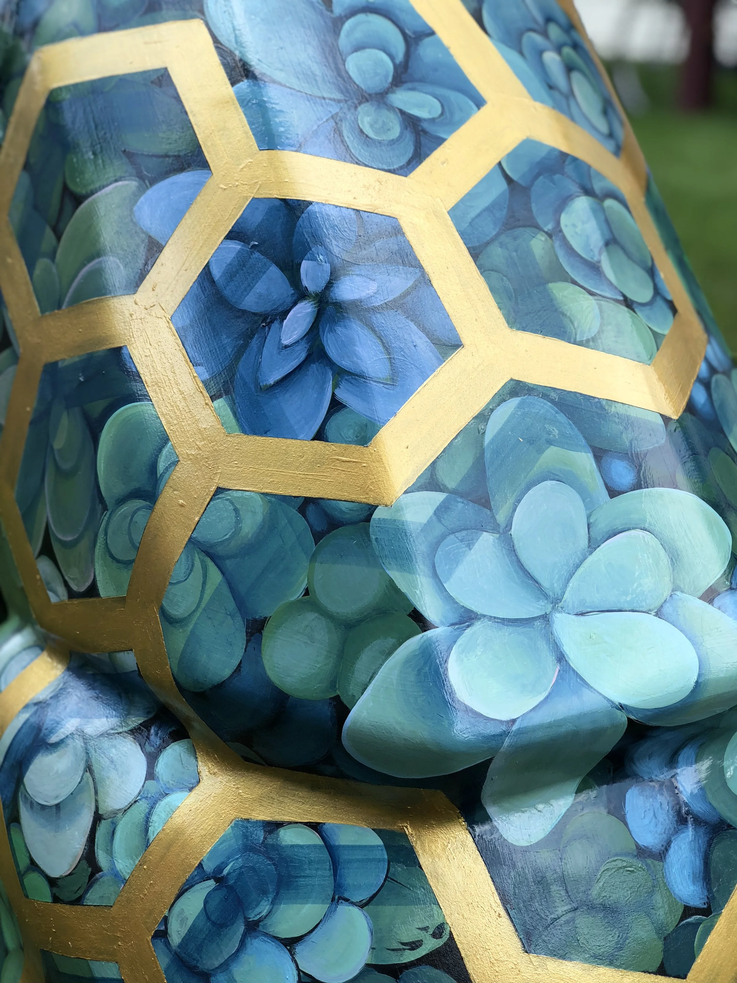 The Park Hyatt Chicago is a beautiful hotel with many elements of nature throughout. Drawing inspiration from the hotel’s interior, these two K9s feature succulents, peonies, and honeycomb. The architectural structure of the honeycomb against succulents and flowers is a nod to the juxtaposition of nature found in a sprawling city such as Chicago.